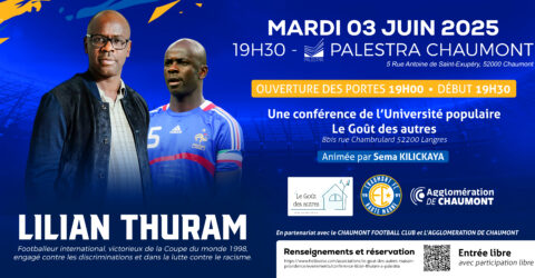 Lilian Thuram à Chaumont – Mardi 3 juin à 19h – Salle Palestra Champion du monde, auteur engagé, militant...